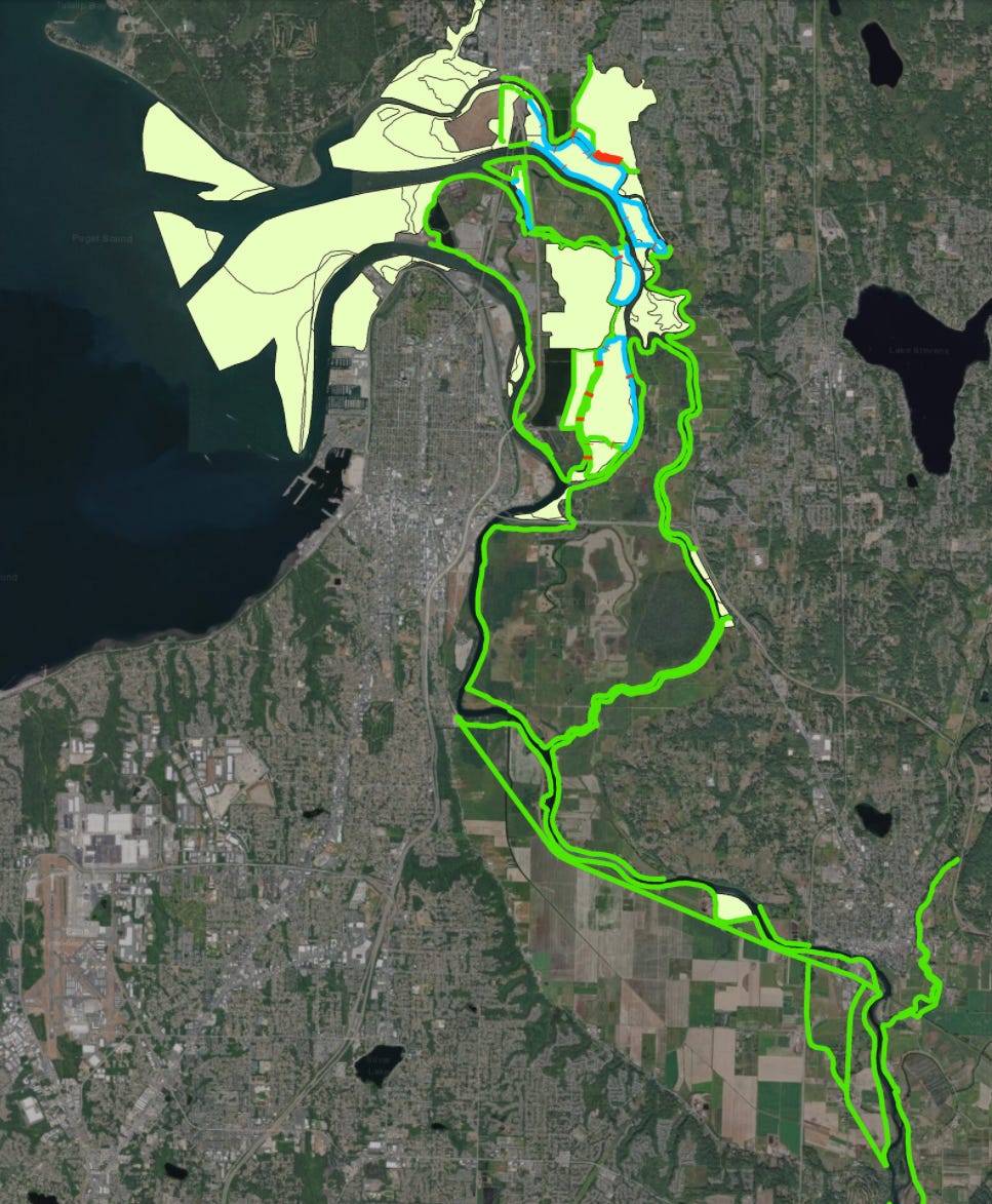 This quickly became a quest to find every publicly accessible walking trail in this area, and I’ve made a Google map that includes the spots I’ve found (so far). This is a “living map,” meaning I’m adding to it over time and I will refer back to it. In fact, I’ve already added a map layer for places to grab a beer that you can use if you go to the map and turn on that layer. Next layer: fried chicken. (And the map is also on my website, at Exploring the Snohomish River Ecosystem, where I’ll keep an updated list of articles and other resources on the subject.)