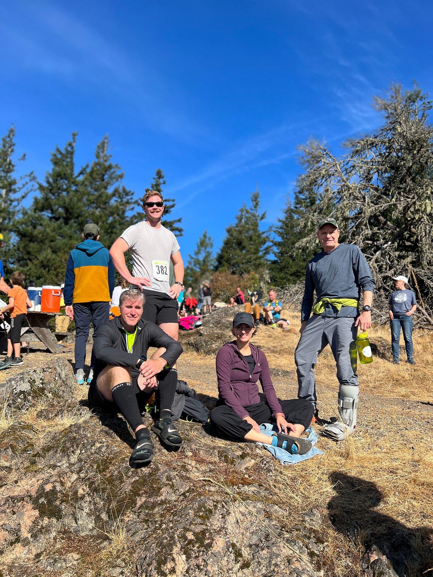 Runners and Nick (also injured) wait for Lou at the top of Little Summit