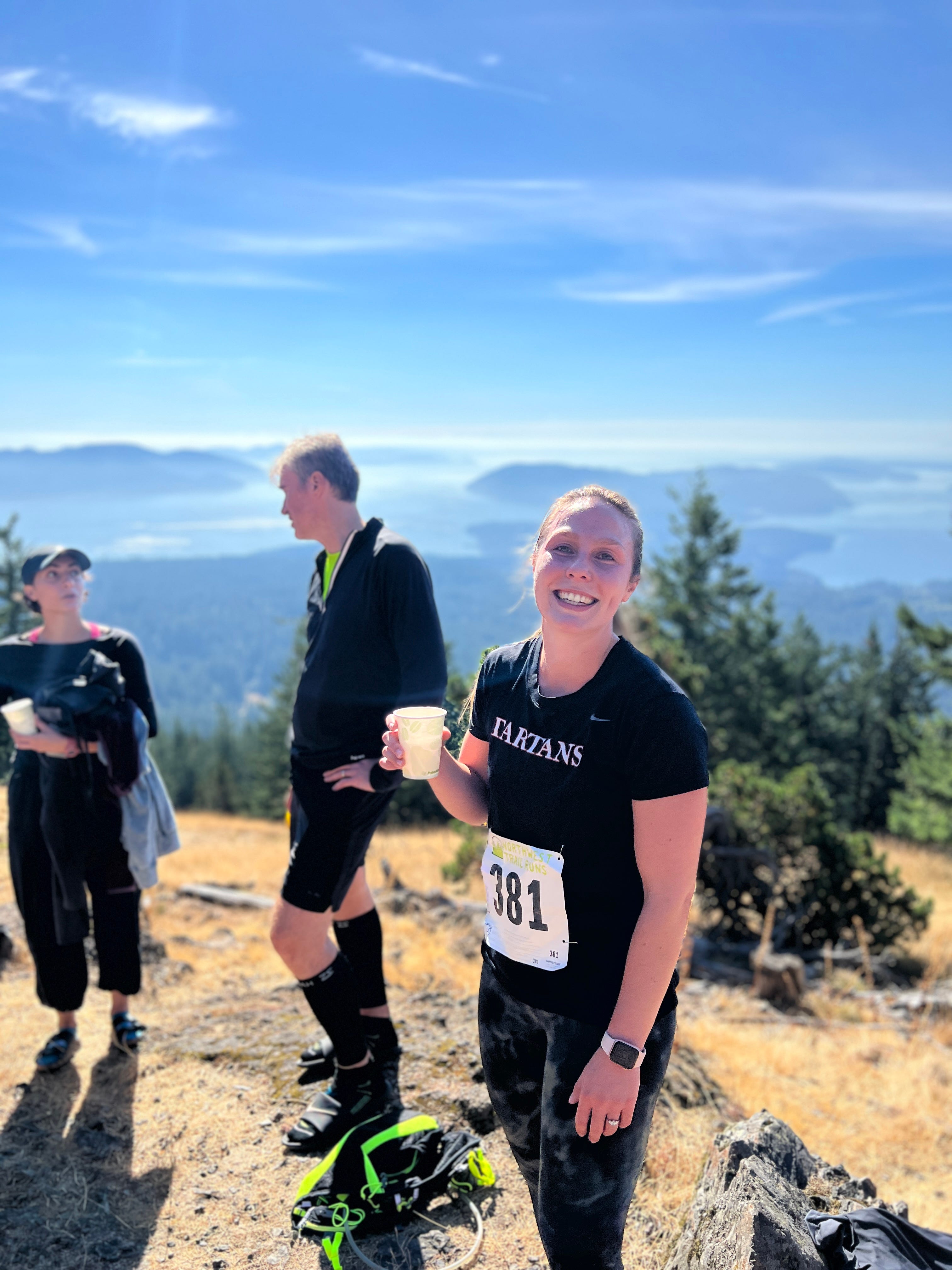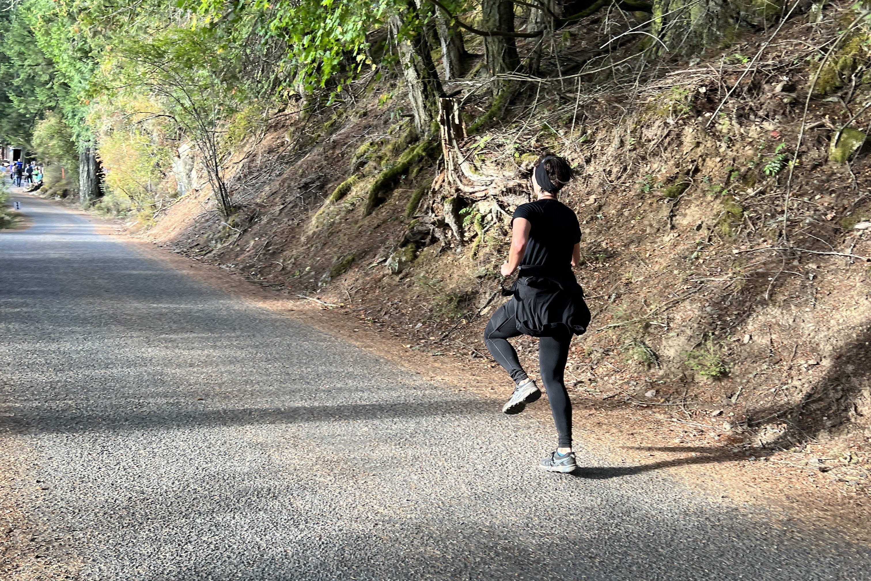 Louisa finishes the massive hill climb and prepares to hand off to Sam. She had some choice words about the quality of the fourth leg …